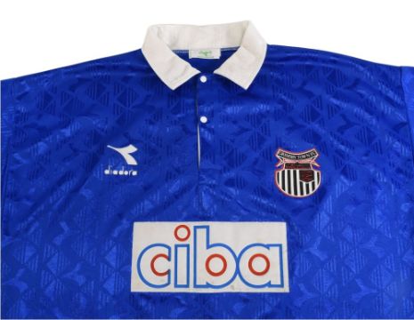 1994/95 Grimsby Town FC Away Football Shirt #10 Match worn Size XL Diadora Blue VGC