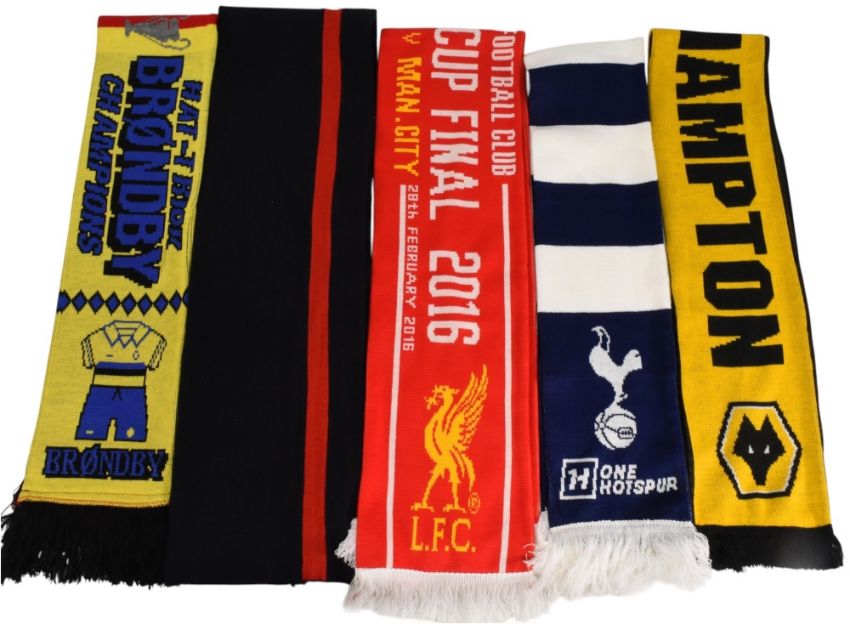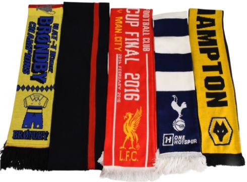 Football Scarves to include Manchester United/Brondby, England, Liverpool 2016 Cup Final, Tottenham Hotspur, Wolverhampton Wanderers (5). All in excellent condition