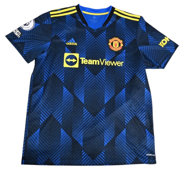 2021/22 Manchester United Away Football Shirt ‘Ronaldo 7’ to reverse, in blue, short sleeve, Adidas/TeamViewer, size XL, Premier League and No to Racism shoulder patch