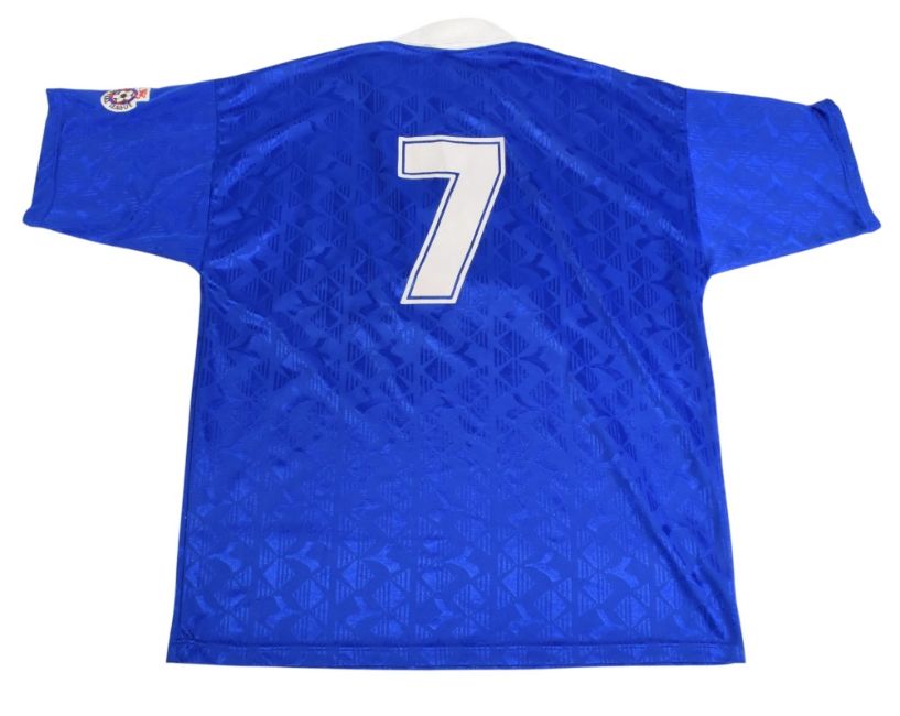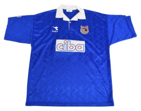 1994/95 Grimsby Town FC Away Football Shirt #7 Match worn Size XL Diadora Blue VGC