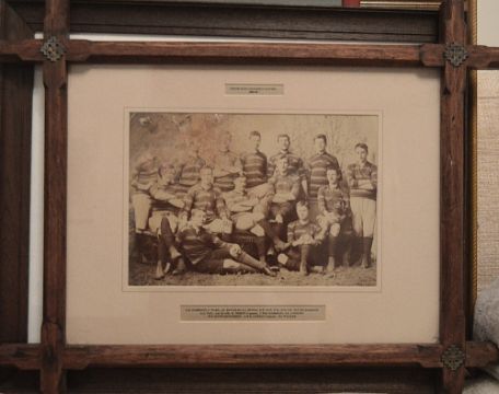 1889-90 Edinburgh University Rovers Framed Photograph: With fading and some damage to top left corner of image, sepia 26” x 21” overall in attractive and unusual original dark wood frame with metal fixings (one lost), of this Scottish capital side some 135 years back. Otherwise VG and hugely evocative, even for the frame alone!