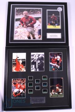 England 1966 World Cup Montage: 5 photographs and 7 cells, framed and mounted, with Manchester United Paul Scholes auto pen signature. Size 44cm x 46cm and 35cm x 45cm (2)
