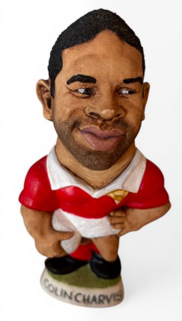 Grogg: Wales Colin Charvis: 6” resin figure of the former Wales captain, a lovely likeness in Wales kit, from the Grogg Shop, signed to the base by maker Richard Hughes. VG