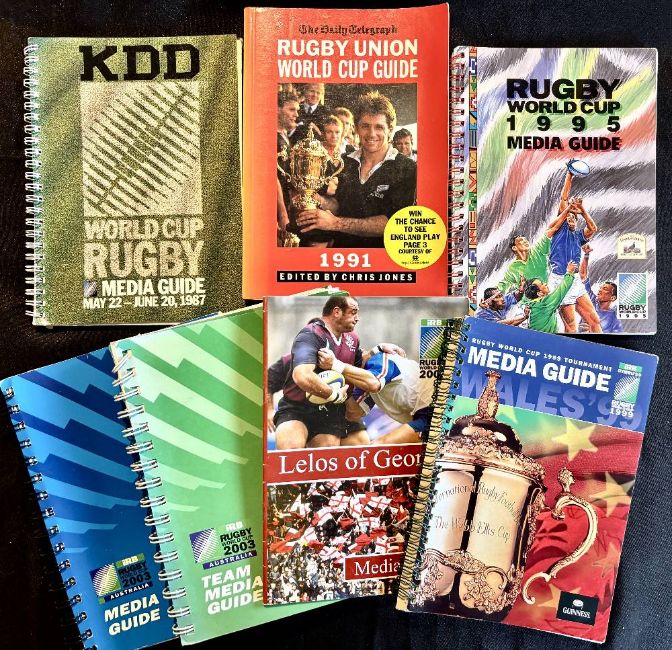 1987-2003 RWC Media Rugby Guides (7): The RWC Official Guides for all except 1991, where the substantial Daily Telegraph Guide steps in, plus an interesting Georgia example. All full of detail. G/VG