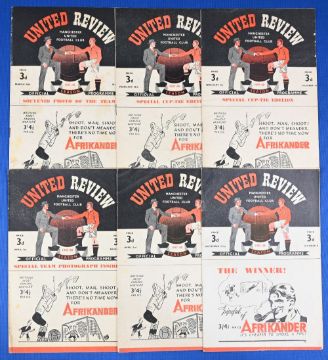 1947/48 Manchester United home match programmes Bolton Wanderers (United team photo), Preston NE (FAC) (team changes), Charlton Athletic (FAC at Huddersfield), Manchester City, Derby County, Everton; fair/good. (6)
