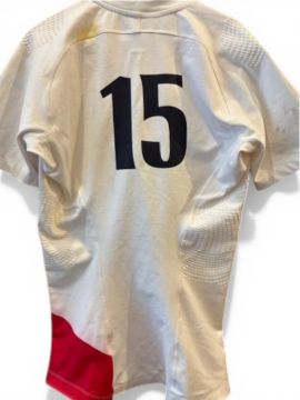 2009 England Match worn Rugby Jersey: Delon Armitage no.15 jersey, white, Nike, fully logoed, O2 sponsor, England v Wales, exchanged with Lee Byrne. VG