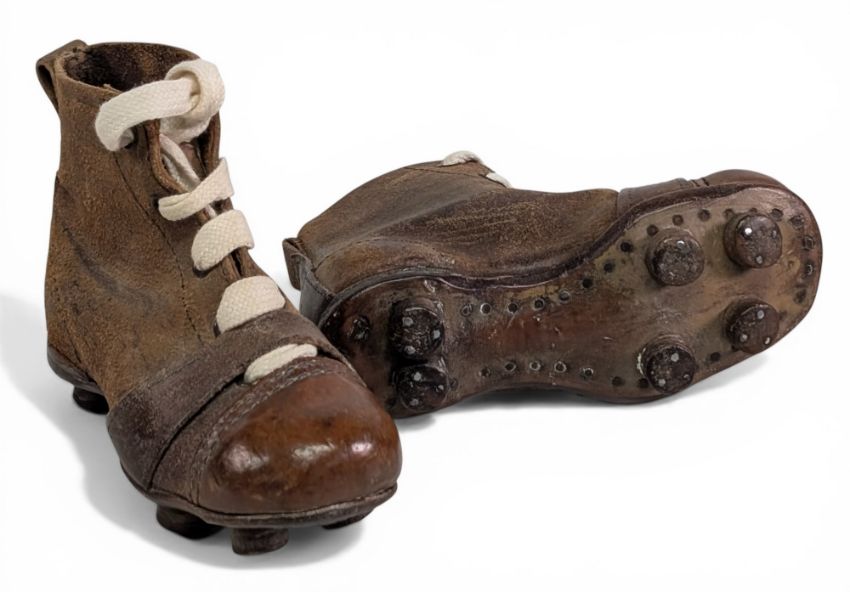 Pair of period c1920 child’s leather Football Boots, with hammer leather soles and studs, look unused, #17cm long