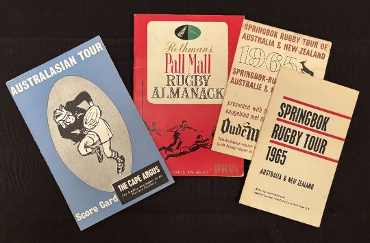 1965 S Africa in NZ Brochure/Itinerary Cards/Fixture Lists (4): The Pall Mall Almanack, Riggio Tobacco, Cape Argus and Brandy Wine issues. G/VG