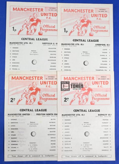 Manchester United reserves 1970/71 homes Sheffield United, Liverpool, Preston NE, Burnley; fair/good. (4)