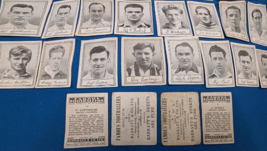 Barratt & Co Ltd Famous Footballers: spares cards from mixed series, 2x unnumbered L Leuty Derby, E Hinton Millwall, A1, A2, A3 and new series #64, with duplicates in fair used condition