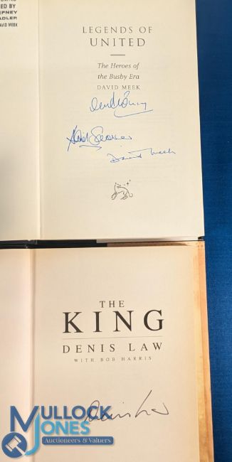 2x Manchester United signed books: Legends of United signed by Alex Stephney, David Sadler and author David Meek, plus the King - Dennis Law (2)