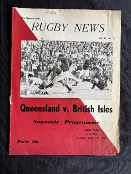 Scarce 1966 British and I Lions Rugby Programme v Queensland: Rugby News edition. 12pp Brisbane effort with bold action cover. Quite good, some creasing
