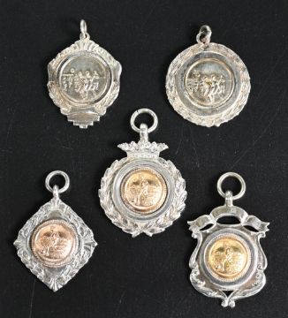 3x Silver Hallmarked Football Fob Medals: all c1930s Birmingham hallmarks, unengraved, plus 3 plated examples - 31g