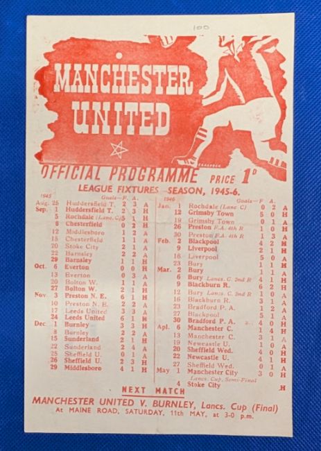1945/46 Manchester United v Stoke City War League North single sheet programme 4 May 1946, team changes. (1)