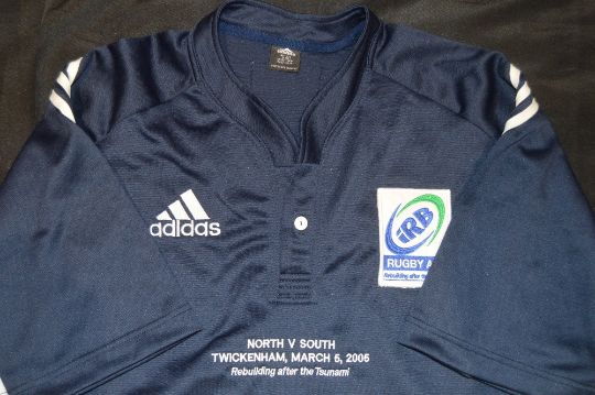 2005 North (v South) IRB Tsunami Relief Rugby Aid Jersey: Attractive navy and white example from this match for a great cause, match-prepared but no number. Adidas made and logoed along with special IRB badge. Mint