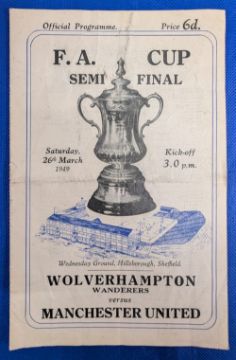 1949 FA Cup Semi-Final Football Programme, Wolverhampton Wanderers v Manchester United, 26/3/1949. Creasing noted