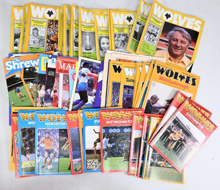 1980- 85 Wolves Wolverhampton Wanderers Home & Away Football Programmes: League, Cups, Friendly, Testimonials noted 80-81 home x26, away x27 FA semi final v Spurs 81-82 home x23 Kenny Hibbitt testimonial, John Richards testimonial, FA Youth 3rd round replay sheet, away x23 v Willenhall, Wolves training scheme, John Richardsctribute, 82-83 home x25, Geoff Palmer testimonial, v Stoke friendly, v Luton friendly, Central League v Newcastle, Villa and Sheffield United, aways x 25 Senior Cup semifinal, Tranmere festival game, 83-84 home x23 aways x25 with 1984 PFA awards, 84-85 home x24 and friendly Aston villa x7, aways x24