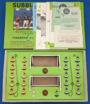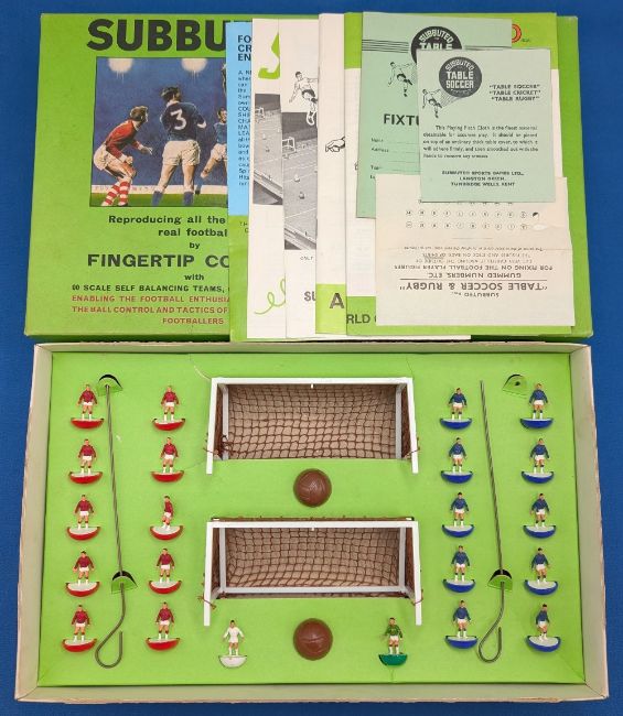 1970-71 Subbuteo Table Soccer Continental Display Edition, with OO gauge scale figures red shirts with white shorts blue shirts with white shorts zombies, with all literature and price list