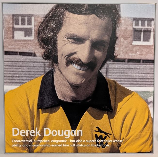 Derek Dougan Wolverhampton Wanderers Hall of Fame mounted Poster - a professionally printed image on heavy board - with slight damage to top of frame, size #71cm x 71cm