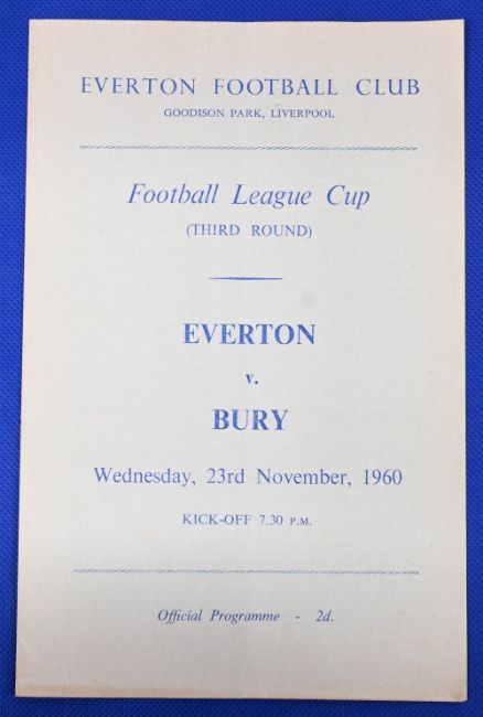 1960/61 Everton v Bury FLC 3rd round 23 November 1960, 4 page, team changes. (1)