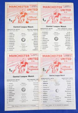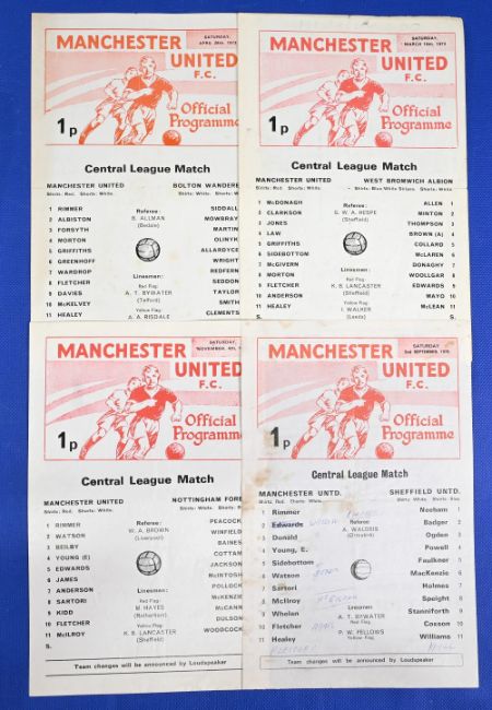 Manchester United 1972/73 reserves homes Bolton Wanderers, WBA, Nottingham Forest, Sheffield United; fair. (4)