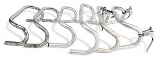 Cycling Accessories – 6x various Handlebars – details such as Mavic 351 Maes England with stem and brake levers, Philippe Atax Franco Itali D352, GB, AVA etc. – measuring 37-44cm approx. – mixed condition