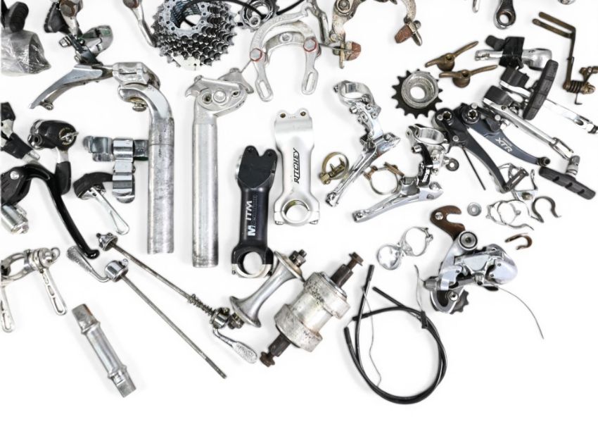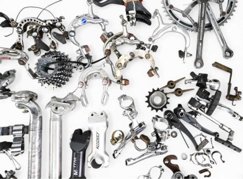 Cycling Parts/Accessories – Box of various components – brake callipers, seat posts, levers gear cassette, stems etc - mixed condition – small box