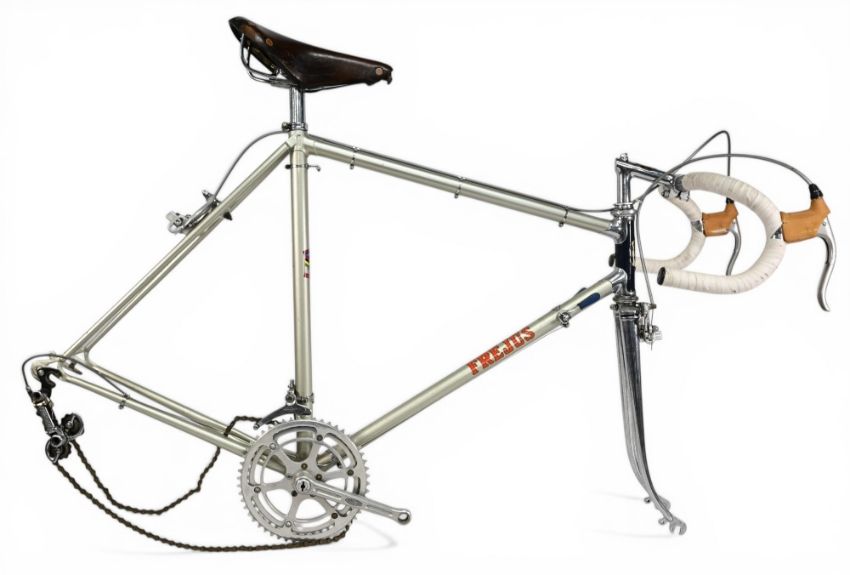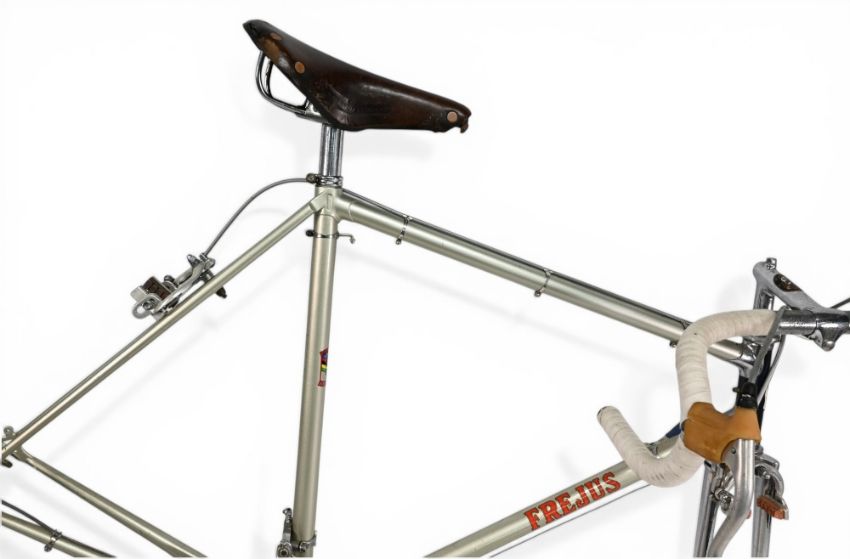 Vintage ‘Frejus’ Bicycle Frame – stamped 029698 – 22”, makers decals, Cinelli handle bars, Universal Extra brake callipers, Brooks Professional leather saddle, Campagnolo front and rear derailleurs and gear selectors