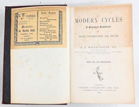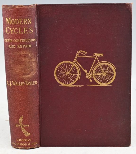 Cycling History Book - Modern Cycles A Practical handbook on their construction and repair by A J Wallis-Tayler, C E 1897, London: Crosby Lockwood & Sons, with over 300 illustrations, in cloth boards with gold gilt, minor foxing, marks internally, slight bruising at corners, still early and scarce copy