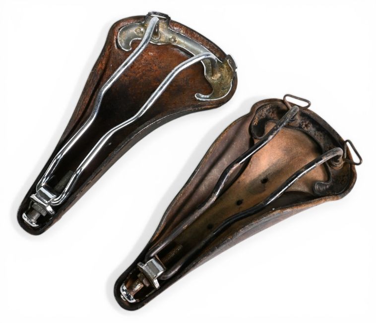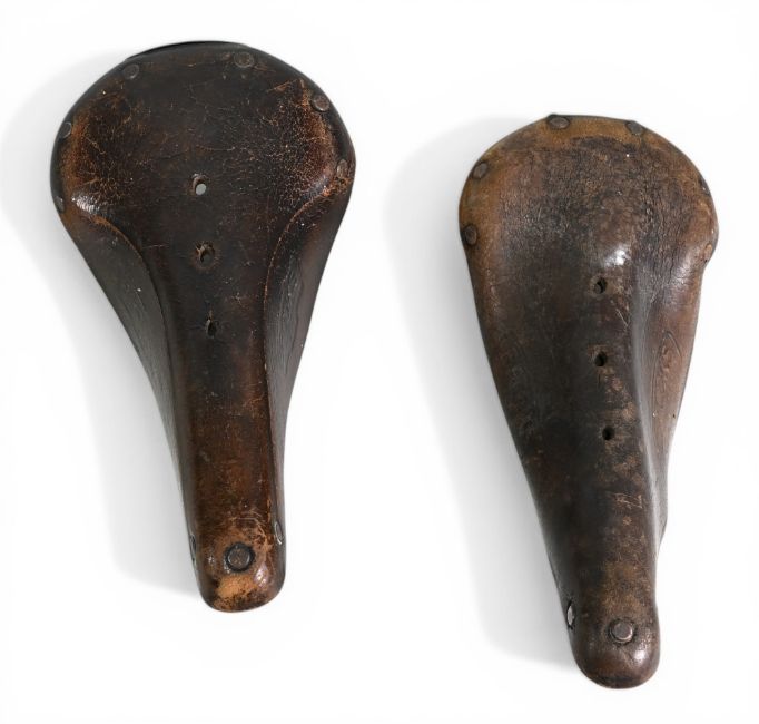 Cycling Accessories - Vintage Brooks Leather Saddles/Seats x2 – a B15 and B-17 examples – both in brown, used, condition overall – both measuring approx. 29cm