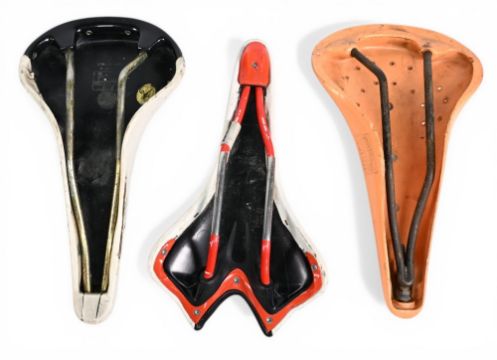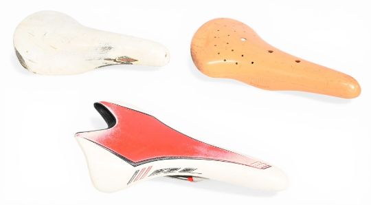 Cinelli Unica Nitor plastic Bicycle Saddle together with Selle San Marco Rolls leather bicycle saddle and a Bontrager 146 fiber reinforced bicycle saddle – mixed condition throughout (3)