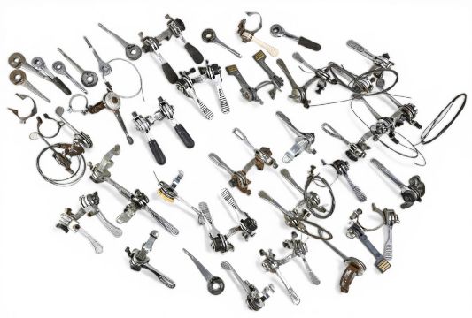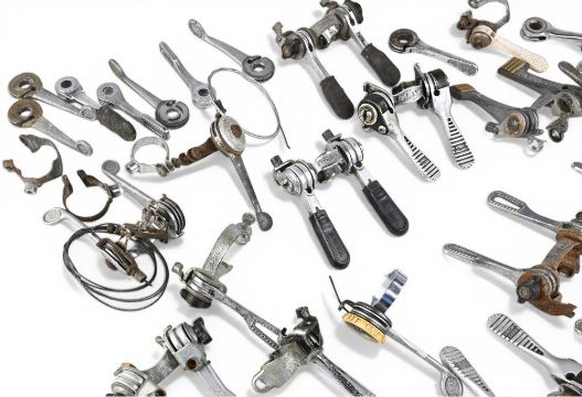 Cycling Accessories – Gear levers and linkages, cabling etc makers Shimano, Raleigh, Huret, Cyclo Benelux, Siplex, Sun Tour, and more, pairs, singles etc – condition mixed – small box