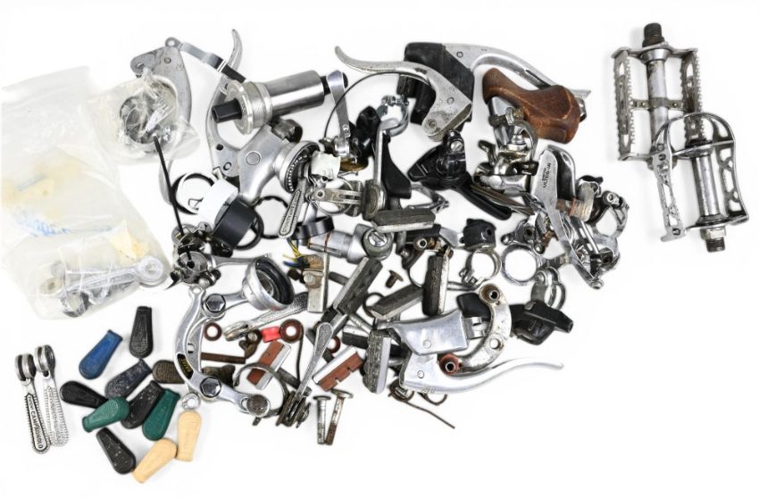 Assorted Bicycle accessories/parts – small box – Campagnolo parts, gear levers etc, levers, washers, brackets, lever covers, etc – mixed condition! Lucky Dip Box!