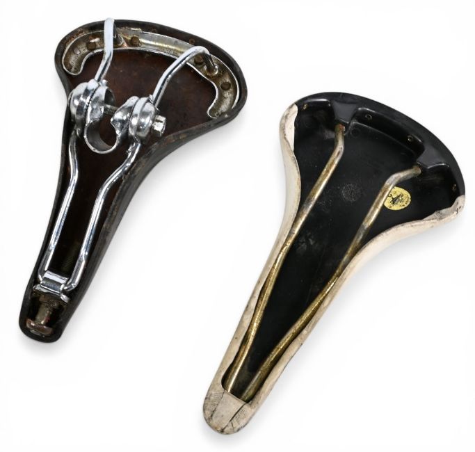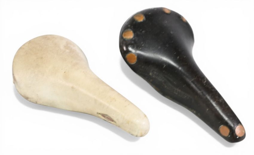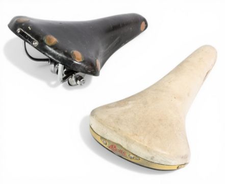 Brooks Professional Bicycle Saddle together with a Selle San Marco Rolls white leather saddle – general condition mixed A/G overall (2)
