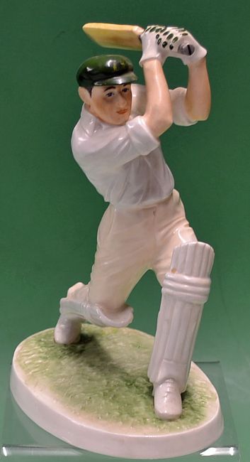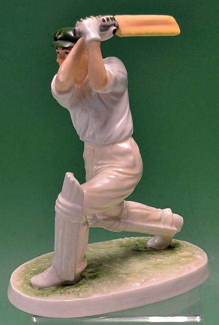 Don Bradman - Coalport Bone China cricket figure of Don Bradman ltd ed number 28/1000^ handcrafted with makers mark stamped to the bottom^ an oval base with Bradman in a batting position^ with no cracks and in VG condition measuring 8.5"h