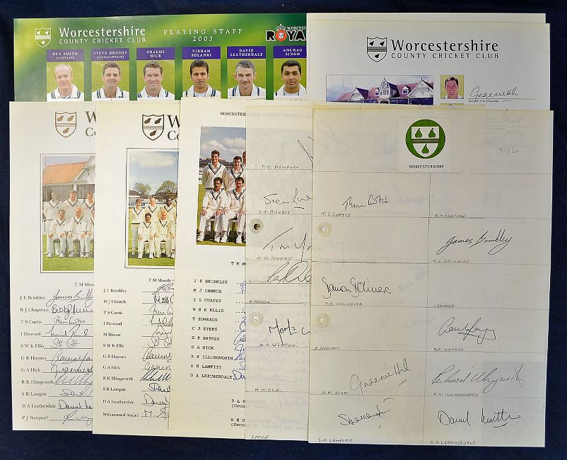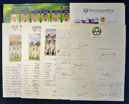 Selection of 1994 onwards Worcestershire CCC signed team sheets and cards featuring Curtis^ D'Oliveir^ Hick^ Illingworth^ Solanki^ Moody^ Rhodes^ Newport^ Radford and many more #140 autographs (7)