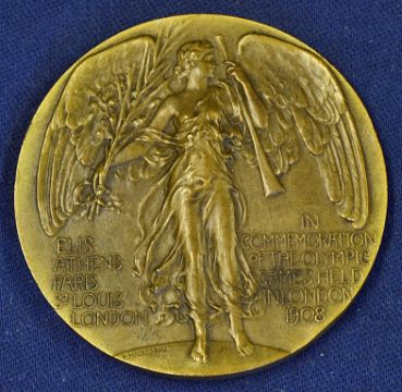 1908 London Olympic Games bronze donar participation medal by Vaughton & Sons (Birmingham) and designed by Bertram Mackennal^ with'In commemoration of the Olympic games held in London 1908' depicting a winged figure to the front and Quadriga to the rear^ c/w original box. Note: the 1908 Olympics were held in London^ however were originally scheduled in Rome^ but were relocated based on financial grounds. Lasting 187 days these were the longest lasting games in modern Olympic history.