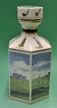 The St Andrews Golfing Whisky Decanter by Pointers of London and Edinburgh - with original Bill Waugh colour images of The Old Course and The R&A^ famous golfers to incl old Tom Morris^ Young Tom Morris^ James Braid^ Harry Vardon^ and the lady golfer^ and the famous Claret Jug - and a panel devoted to the history of St Andrews on the back (in makers original box)
