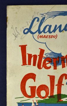1947 International Golf signed Programme - post war charity match played at Llandudno GC between Norman Von Ida^ Dai Rees^ Bill Shankland and Sid Collins - signed to the front cover by Von Nida and Dai Rees to the back cover - c/w ticket and some tees -all proceeds from the event were in aid of Servicemen's Families Association - overall (G)