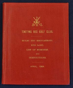 1904 Tooting Bec Golf Club - in the original red and gilt cloth boards to include Rules and Regulations^ Bye Laws^ Office Members^ List of Members^ Competitions and Winners^ 67pp overall (G)