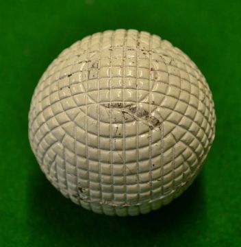 Original c1900 line mesh pattern rubber core golf ball - retaining 95% white paint finish but has a two slight strike marks