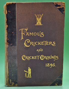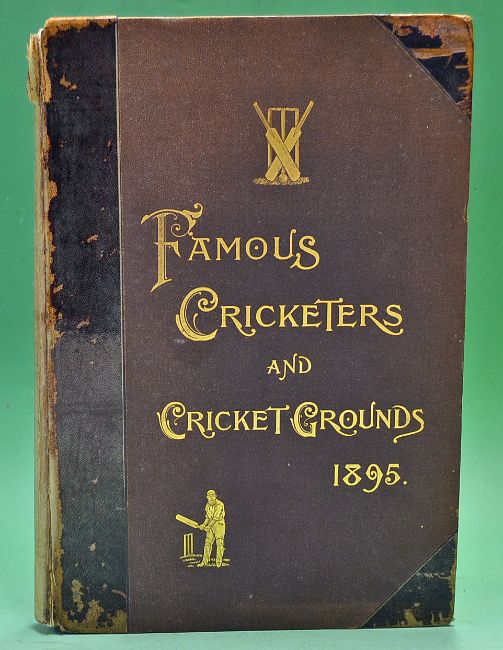 1895 Cricket book'Famous Cricketers and Cricket Grounds' with leather to spine and corners^ pictorial hardboard cover ^ edited by C.W Alcock and published by Hudson & Kearns of London^ the corners and spine are protected by plastic however do have slight damage^ the pages are very clean and in G condition