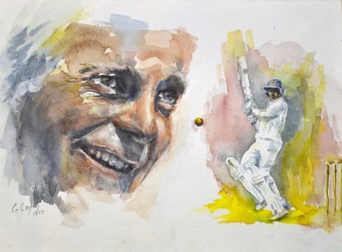 David Gower original cricket portrait/batting watercolour - signed by the artist G. Caley and dated 1993 - image 10.5x 14.5" mf&g overall 16.5 x 19.5". Note: Ex Keith Crump Collection Sept 2006 lot 134
