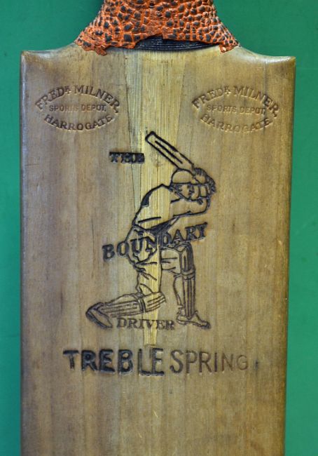 Scarce 1934 Australia signed cricket bat to incl D Bradman^ W Brown^ W Ponsford^ S McCabe^ W Woodfull^ L Darling^ A Chipperfield^ C Grimmett^ W O'Reilly^ T Wall^ A Kippax^ B Barnett and L Fleetwood-Smith^ plus CB Fry and A Mailey altogether 15 signatures^ the bat is stamped'The Boundary Driver''Treble Spring' and by the maker Fred Milner Harrogate^ the grip still intact but has hardened^ the signatures are very clear overall hence (G)