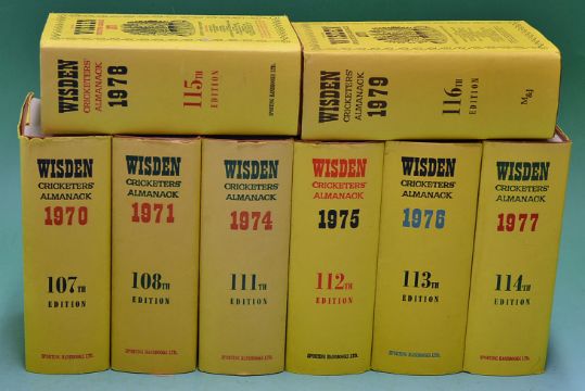 Wisden Cricketers' Almanacks 1970^ 71^ 74-79 all original hardbacks with DJs in VG condition (8)