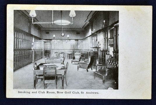 The New Golf Club St Andrews postcard showing The Smoking and Club Room^ New Golf Club^ St Andrews. Unused. A very rare'interior' view.