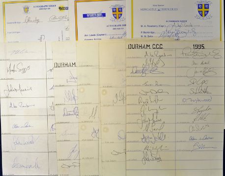 Collection of 1995 onwards Durham CCC signed team sheets featuring players such as Boon^ Collingwood^ Harmisson^ Brown^ Roseberry and many more^ with #120 autographs (9)