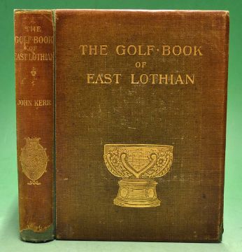 Kerr^ John signed - "The Golf Book of East Lothian" signed ltd ed 1896 no 263/500 - original brown and gilt decorative cloth boards signed by John Kerr to the limitation page - private library stamp mark - numerous illustrations throughout - rebound still retaining the original boards^ new spine with the original gilt title laid down overall very clean hence (G).