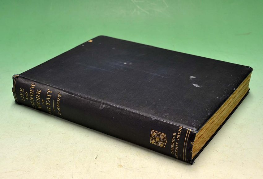 Knott^ Cargill G - "Life and Scientific Work of Peter Guthrie Tait" -1st ed 1911 in the original blue and gilt cloth boards and spine with chapters that include Tait at St Andrews (contributed by J.L. Low)^ Tom Morris and Young Tom Morris and leading golfers of the time with several references to the club house^ the Bulger Driver club head speeds^ long driving conditions of impact on the ball and the run of the ball^ phosphorescent golf balls and his relationship with Freddie etc - some rubbing to top and tail of spine and minor bruising to corners internally very clean and tight copy-comes with W A Tait Compliment slip paper laid down to the front free end plate addressed to Charles Anderson The Museum Sydney NSW.