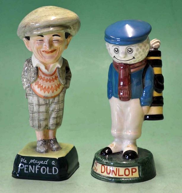 2x Royal Doulton ceramic golfing advertising figures - to incl The Penfold Golfer and The Dunlop Caddie - both ltd ed 2000 Millennium Collection - overall 5.752 and 5.5" respectively (VG)